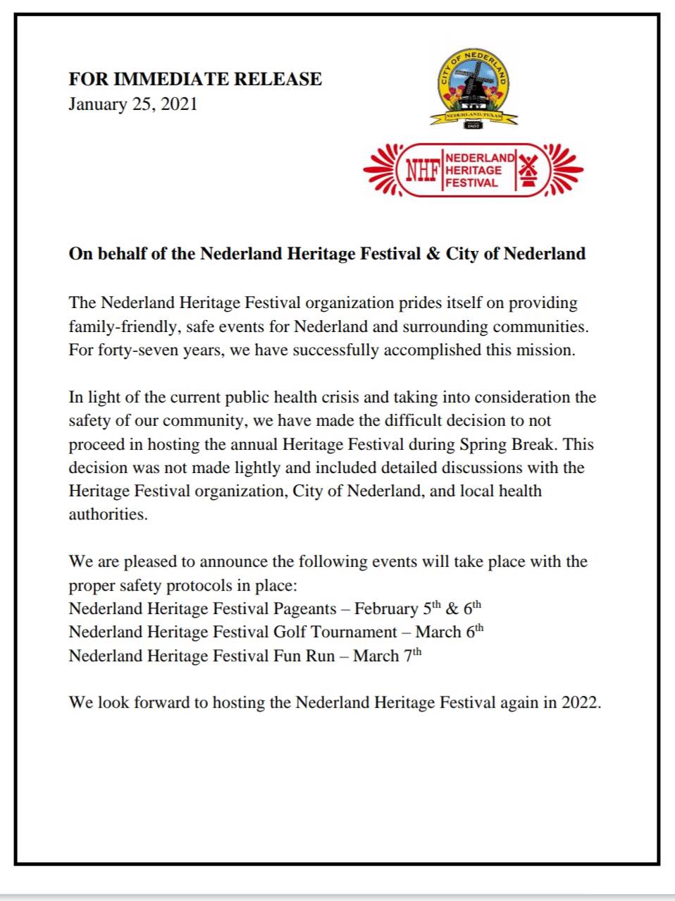 Kfdm News On Twitter Developing Nederland Heritage Festival Canceled Due To Covid 19 Safety Precautions