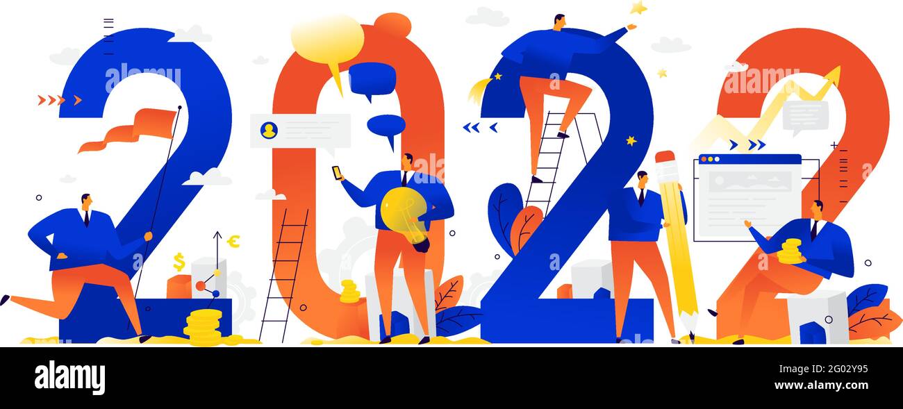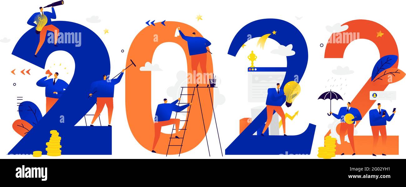 New Year 2022 Meeting The New Year Vector Business People Greet Christmas And New Year New Horizons Preparation For The Holiday Business Metapho Stock Vector Image Art Alamy